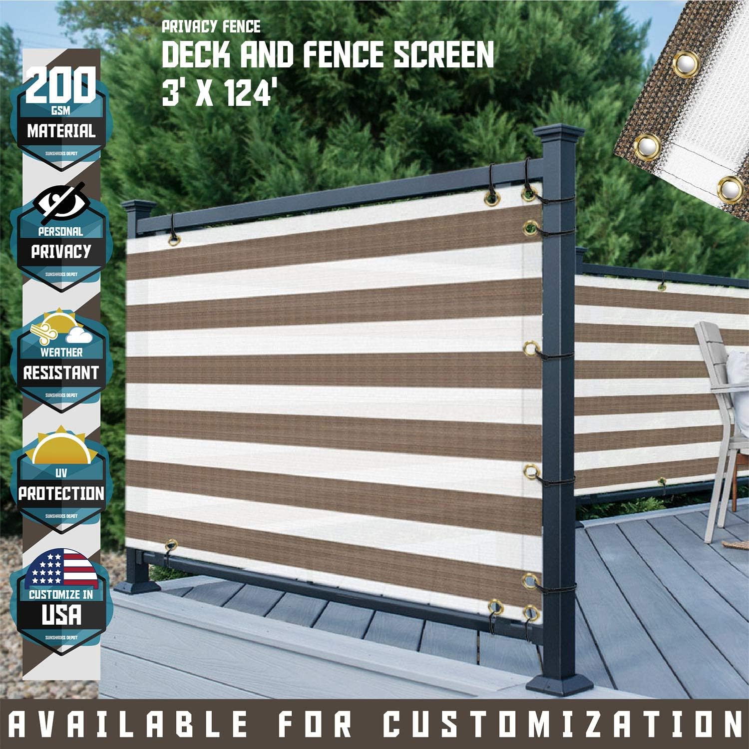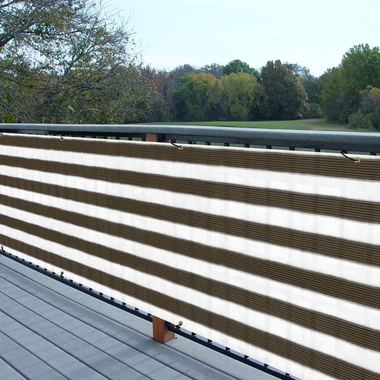 Brown White Striped Deck Privacy Screen Garden Screening