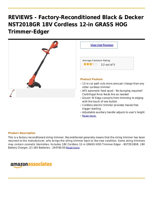 Black Decker Nst2018 18v 12 Cordless Grasshog Trimmer Edger